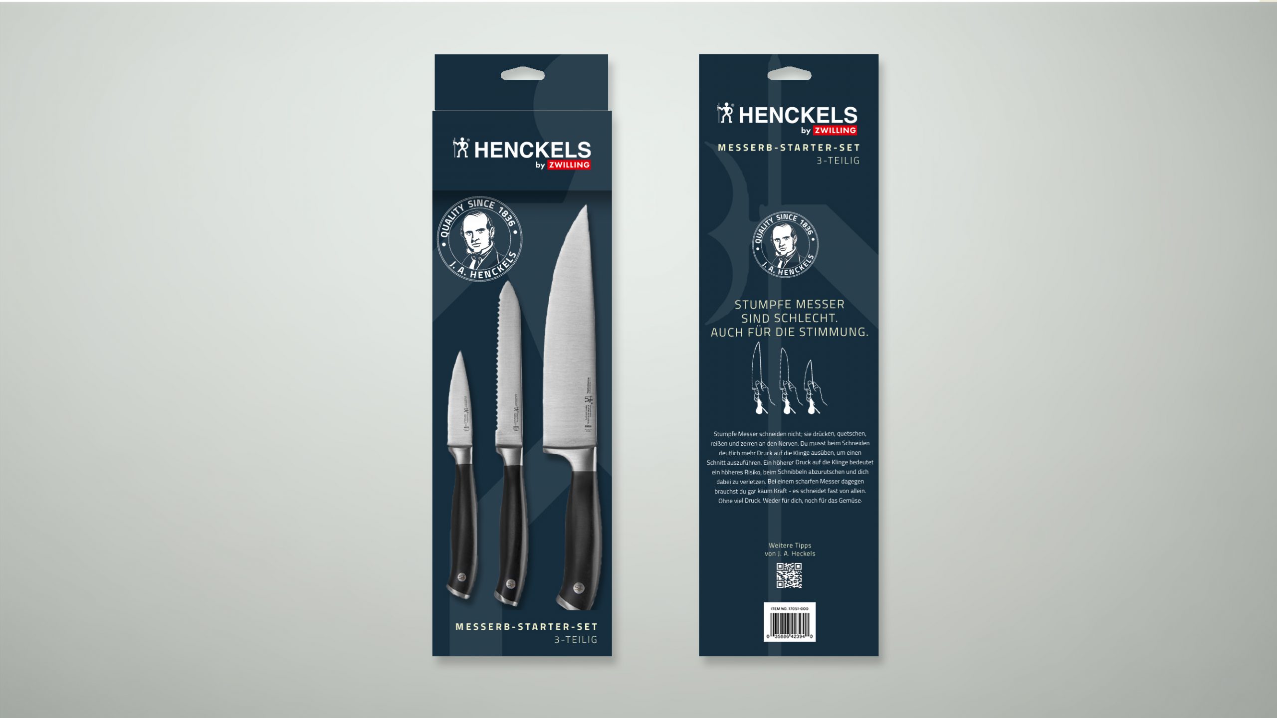 Gemeinsam mit ZWILLING haben wir die neue Valuemarke HENCKELS by ZWILLING entwickelt, inklusive Naming, Markenstrategie und Packaging-Design. Die Marke richtet sich an qualitätsbewusste Kundschaft im Einstiegssegment und wurde zunächst in Deutschland, dann sukzessive in ganz Europa eingeführt.